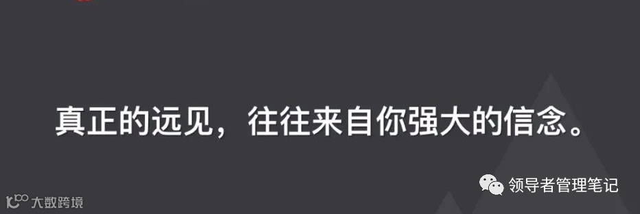 马云讲过一句话:“因为相信,所以看见。”真正的远见往往来自你强大的信念。当你有了清晰的使命和愿景的时候,你就会有足够的眼力和定力穿透不确定性迷雾。