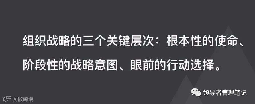 这其中有三个关键的层次:根本性的使命、阶段性的战略意图、眼前的行动选择。使命是不变的,战略意图是相对稳定但又会阶段性调整的,而当下的行动则要随机而变。