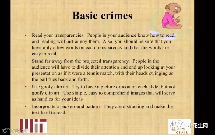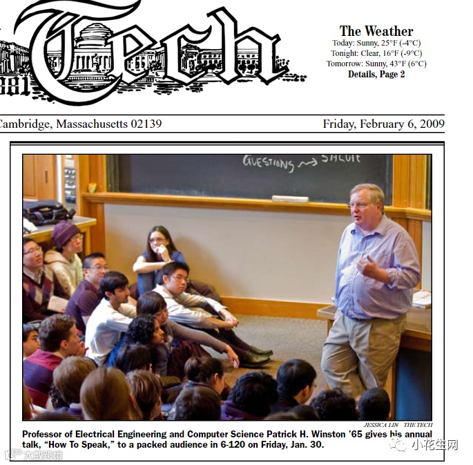 麻省理工学院有一个40多年的传统:每年1月左右,该校温斯顿教授(Patrick Winston)会面向全校学生开一场公开课,主题:如何演讲( How to Speak)?