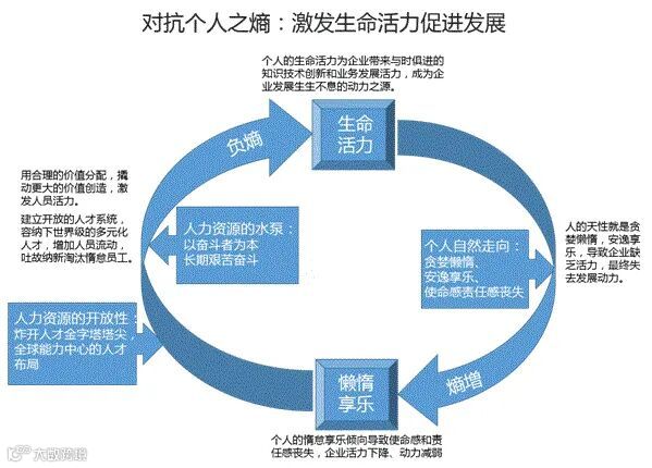 个人微观层面,华为是无数个体的人,重在从人力资源管理角度,探索如何激发生命的活力,从而解决人的惰怠和熵増。