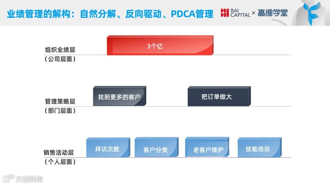 如果我们认为这个逻辑是对的,那么我们每天就要逼着每个销售跑5个新客户,做到了就认为年底这3个亿的指标完成了。