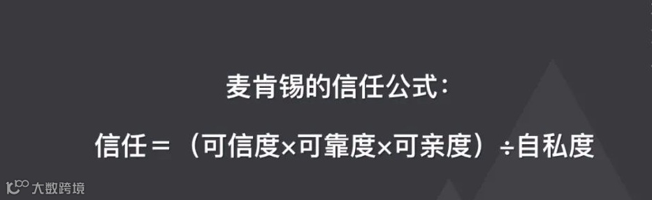 麦肯锡有一个信任公式:信任=(可信度×可靠度×可亲度)÷自私度