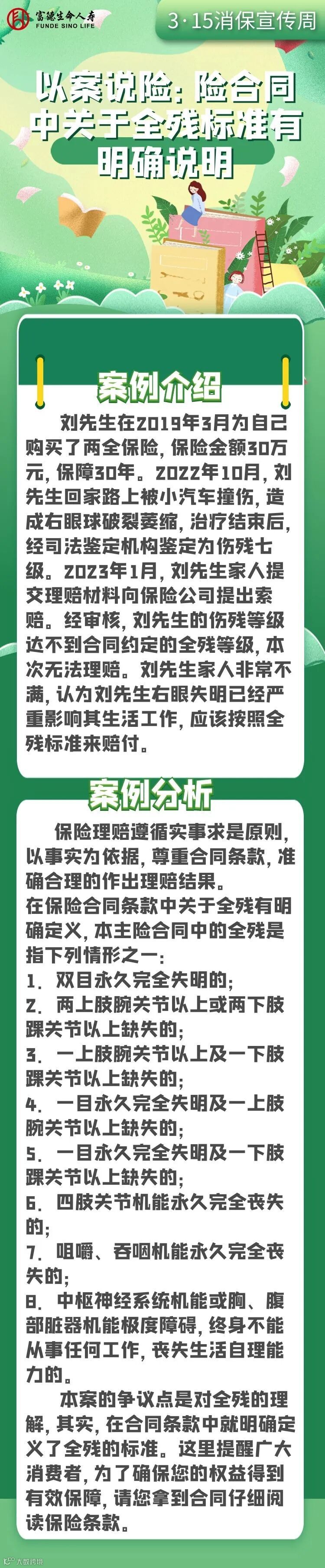 “3·15”消保宣传周—以案说险:保险合同中关于全残标准有明确说明