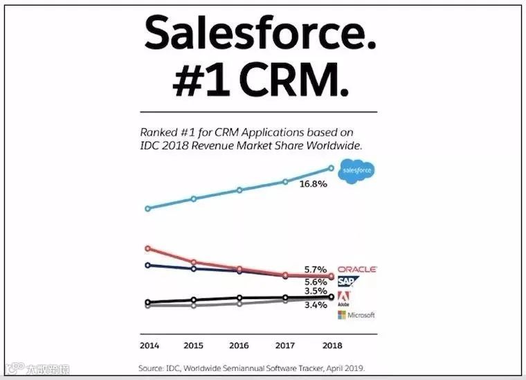 Salesforce的经典广告。直到今天,重点仍然放在它的行业领导地位上。
