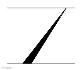 图中上下各有两条线,中间有一条斜线将它们相连,斜线下面粗上面细。