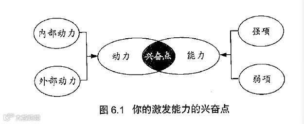 激发能力这一术语通常被用来描述你的动力和你的强项相互重合的部分,我将其描述为领导力的“兴奋点”(见图6.1)。在动力这个问题上,积极心理学的开山鼻祖,Ciaremont大学教授米哈里·奇克森特米海伊曾经指出:“要想找到你的兴奋点,首先要找出你擅长的东西,然后再找出你喜欢的东西。”就这样,奇克森特米海伊抛开了所有的专业术语,用两个简单的维度直接指出了许多受访者用了几百年时间才体悟到的东西。