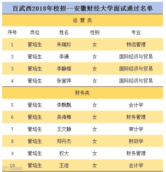 2018年度春招最后一站安徽财经大学面试结果如下: