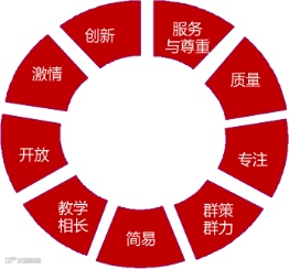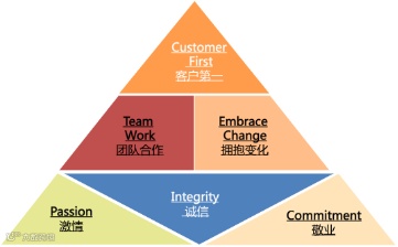 Ø核心价值观:诚信、客户为先、激情、学习、团队精神、追求超越