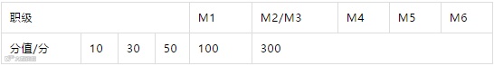 各级管理者单张积分卡对应分值如下: