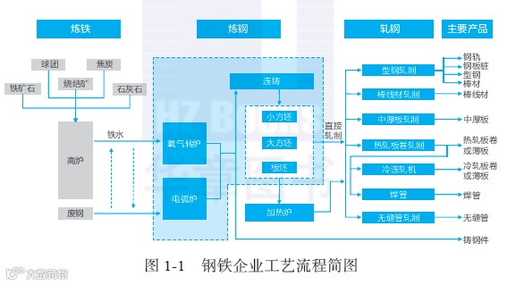 以传统的钢铁企业为例(如图1-1所示),完整工艺包括采矿、选矿、烧结、炼铁、炼钢、热轧、冷轧、硅钢等,辅助生产工艺包括焦化、制氧、燃气、自备电、动力等,在各个工艺流程中沉淀着大量的复杂数据。