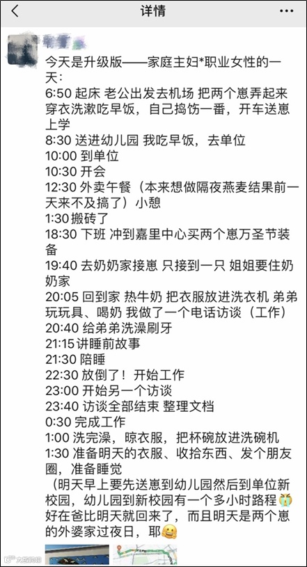 原来我打算采访4位在职场取得一定成绩的女士,但在咖啡馆见最后一位的时候,采访的过程因为对方有事中断了,她给我看了一名职场女性 “普通的一天” :