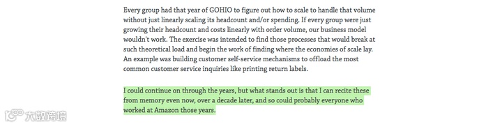 GOHIO成了亚马逊全年的一张简洁而又难忘的名片:它时刻提醒着员工,随着公司的发展,每个人都需要思考如何处理业务规模不断扩大带来的客服投诉、流量、物流等问题。