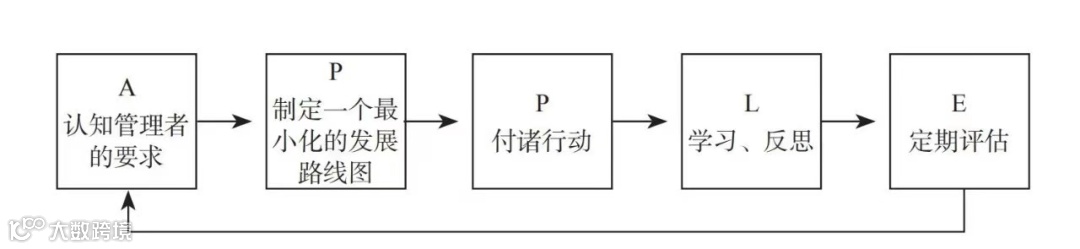认知管理者的要求(awareness);制定一个最小化的发展路线图(path);付诸行动(practice);学习、反思(learn);定期评估(evaluation)。