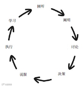 由于不是每个想法都能够参与到“倾听——阐明——讨论——决策”等这些环节,所以下一步是将更大的团队带进闭环。