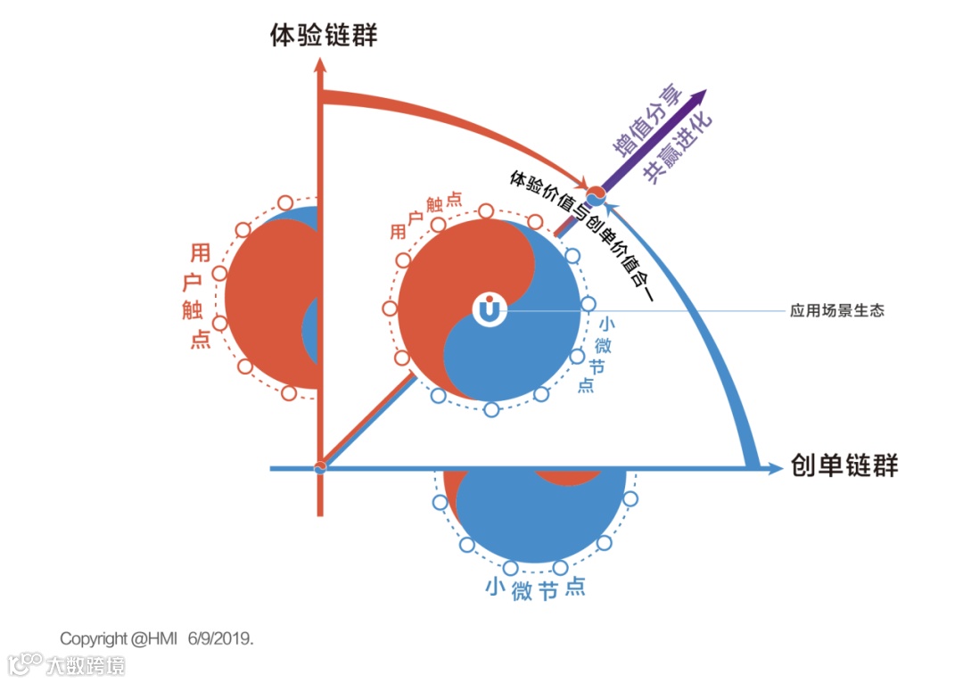 这些小微组成了之后,我到国际上在奥地利维也纳讲的时候,他们就提出质疑,这么多小微企业不乱套了?其实四千多个小微不乱,大家都定下了用户需求,小微企业可以自己组成,没有人指导它,组成之后我们叫做链群,就是一个生态链上的小微群。