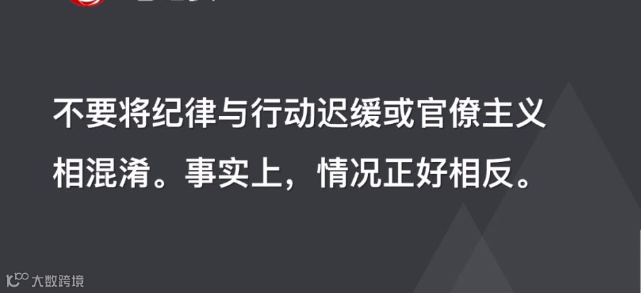 不要将纪律与行动迟缓或官僚主义相混淆。事实上,情况正好相反。