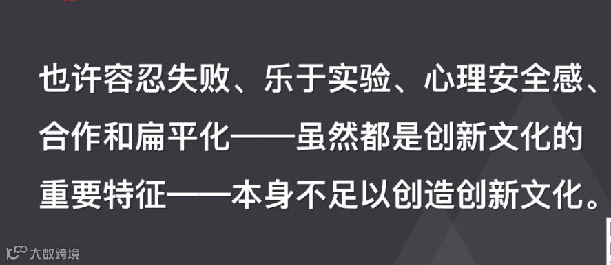 思考越深入,我就越发现他们的担忧可能是成立的。一个问题在我的脑海中形成。也许容忍失败、乐于实验、心理安全感、合作和扁平化——虽然都是创新文化的重要特征——本身不足以创造创新文化。