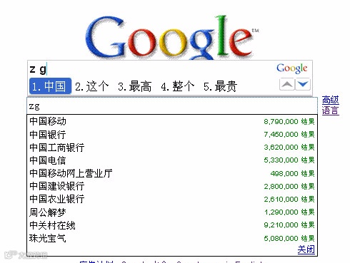 正因为有了这款现名为Google Suggest的搜索建议功能,用户在搜索时键入前两个字母,Google就会推测想要查找的信息,并为用户提供一份下拉单,让他不必将信息全部键入就能点击完整的查询请求。