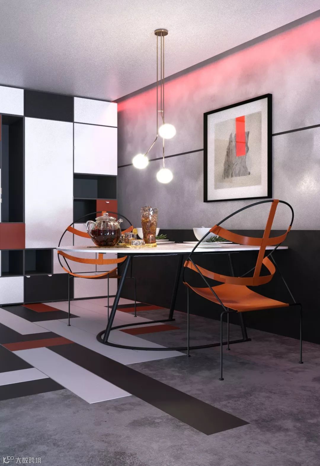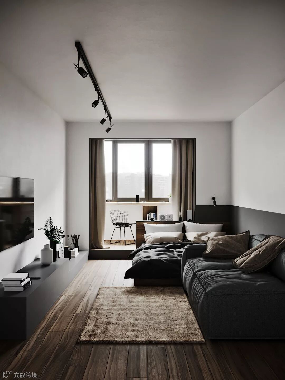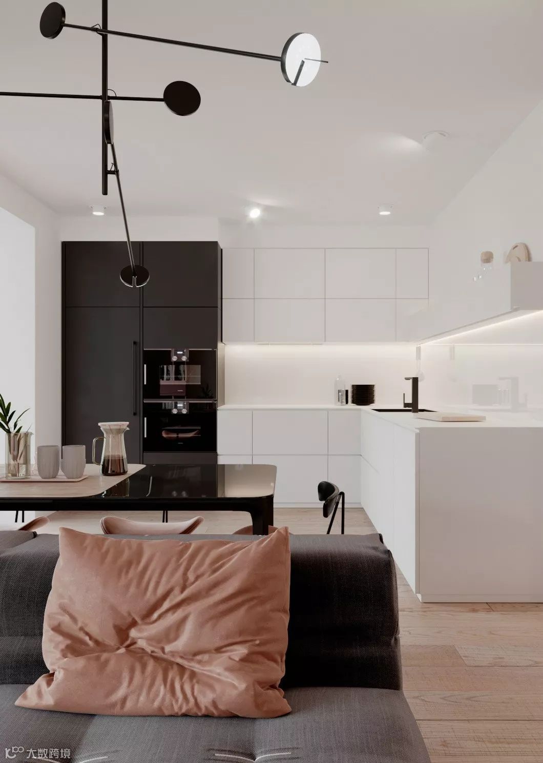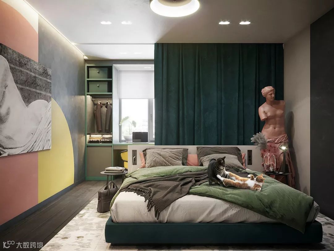 黑色是明度最低的颜色,给人深沉、神秘、寂静、悲哀、压抑的感觉。黑色用在居室中,给人稳定、庄重的感觉。同时黑色非常百搭,可以容纳任何颜色,怎样搭配都非常协调。