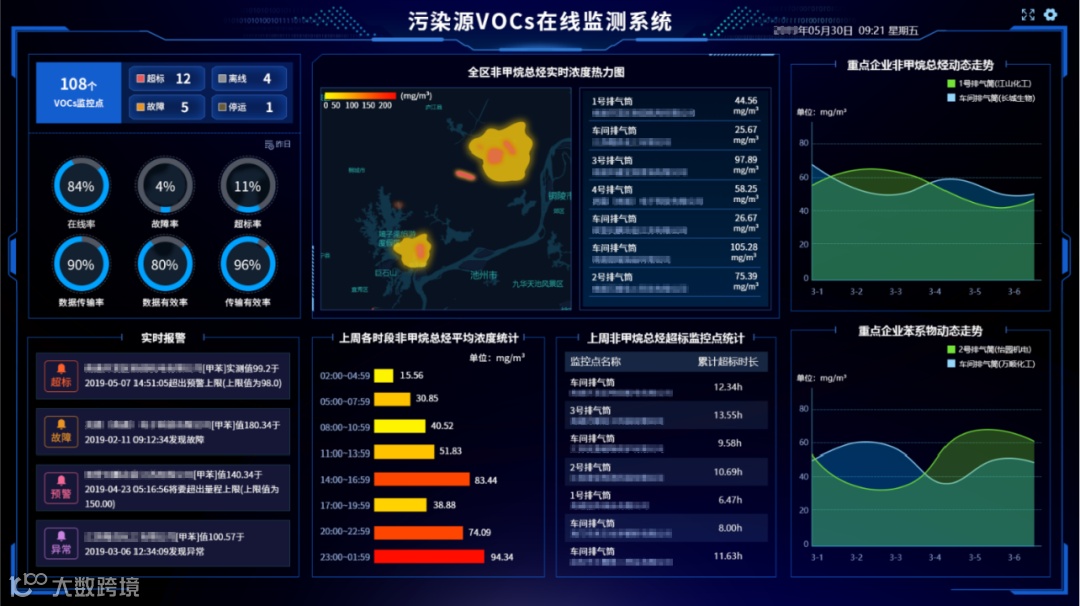 系统界面可直接显示前1小时的污染物平均浓度与小时排放量,数据直观,便于用户参考;