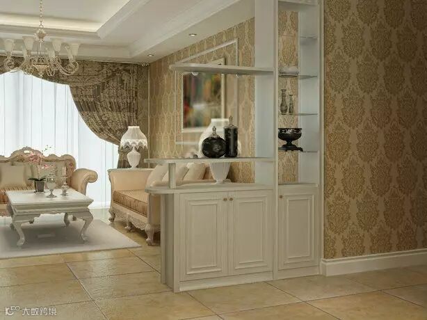 低柜隔断式玄关是以低柜矮台成型的家具在空间内做隔断的效果,低柜矮台可以增加储物空间还可以起到划分空间的功能。