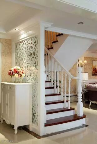 柜架式玄关就是半柜半架的组合,在柜架上设玻璃或者木质的格架作为装饰架,下部为柜体;或者以左右对称的形式设柜件,中部通透分明的形式;或以不规则形式,以镜面、挑空和贯通等多种形式进行综合设计,达到实用与美观的目的。