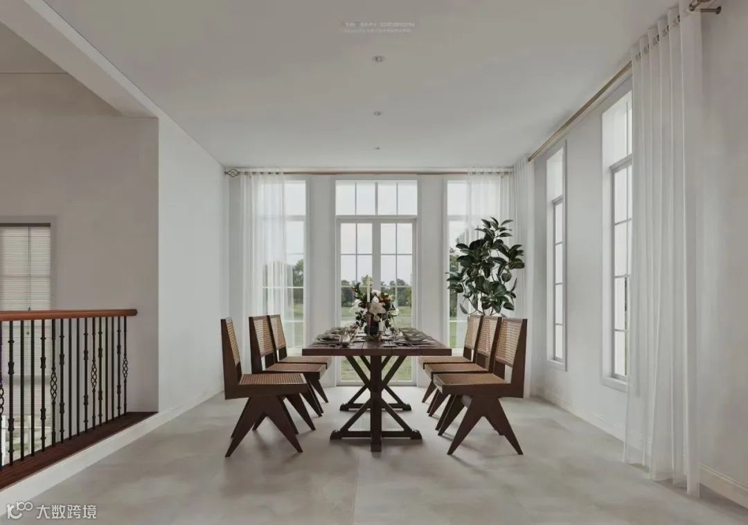 白色的窗纱则使得餐厅空间更加的通透舒适