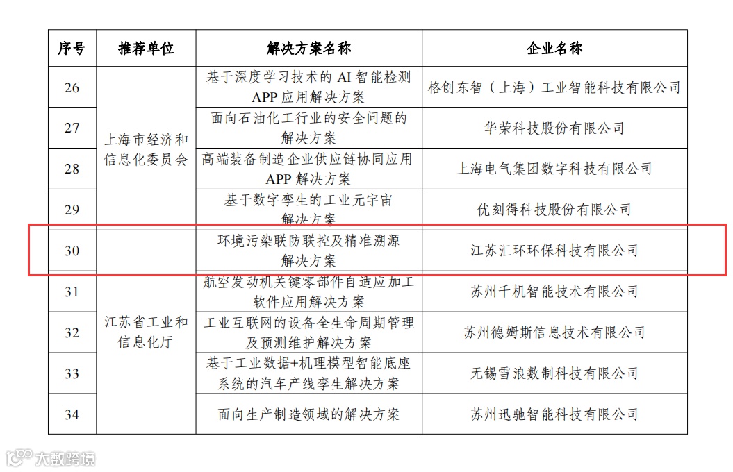 根据工信部要求,优秀解决方案应结合实际应用场景,对工业企业提质增效、转型升级发挥明显支撑引领作用,并已实现产业化或部署应用。汇环科技凭借自主研发的“环境污染联防联控及精准溯源解决方案”成功入选。