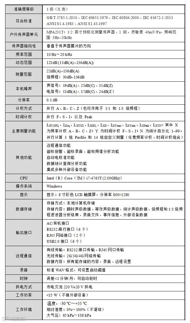 6) 具有倍频程或三分之一倍频程等实时频谱分析功能,符合 GB 3241 对 1级滤波器的要求,可远程设置频谱分析的采样间隔。