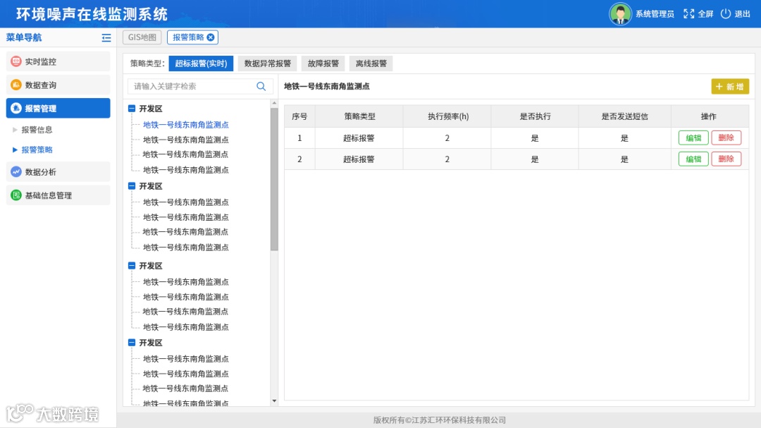 通过现场端设备对环境噪声数据进行实时监测,并将监测数据在软件系统进行质控分析以及应用。系统提供噪声数据采集传输、电子地图、实时监控、超标报警、数据报表、趋势分析等功能,充分满足监管单位的需求。