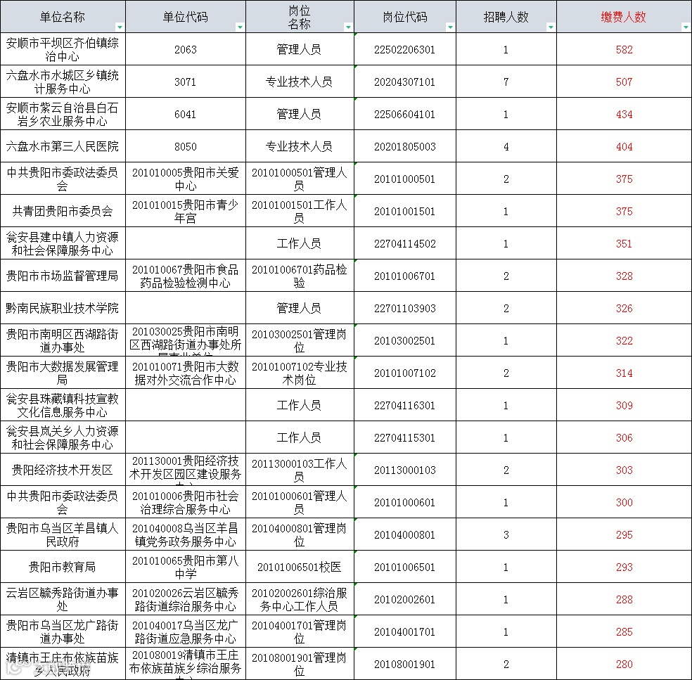 报考岗位前二十