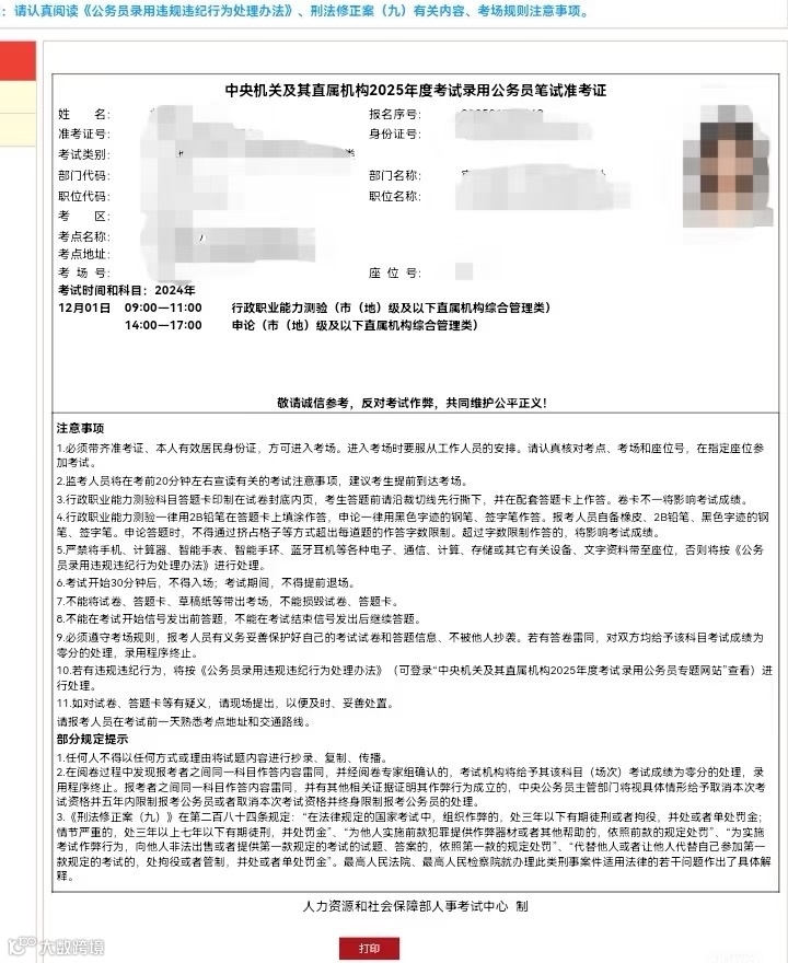 以下为25年国考打印截图