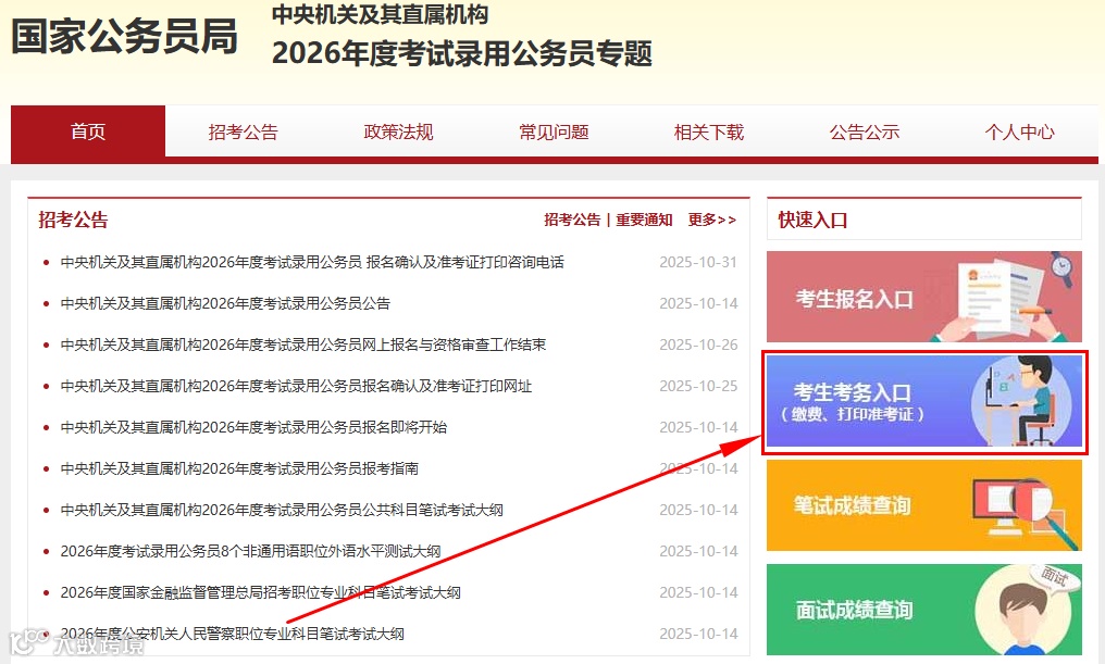 其次点击进入“考生考务入口”