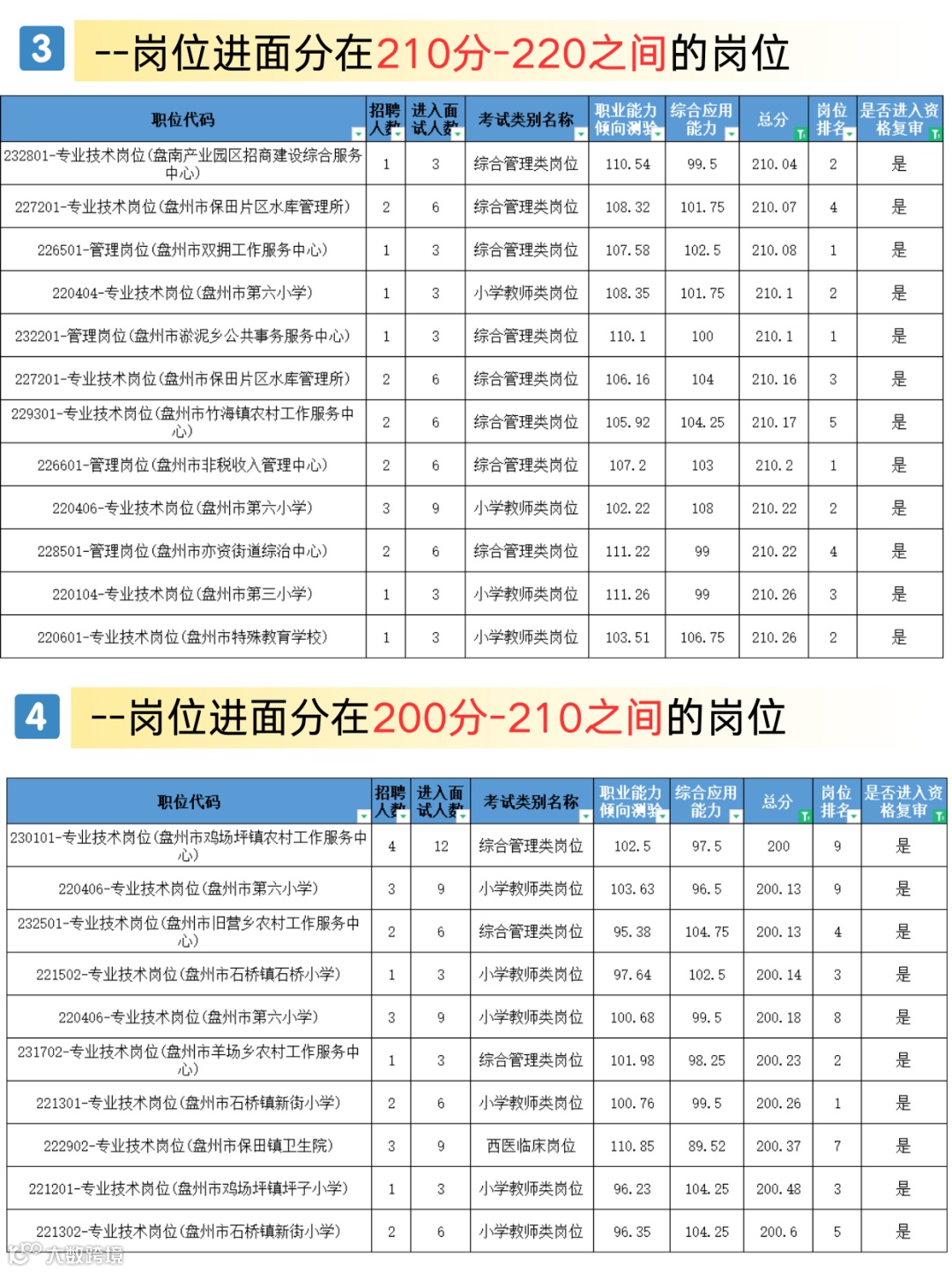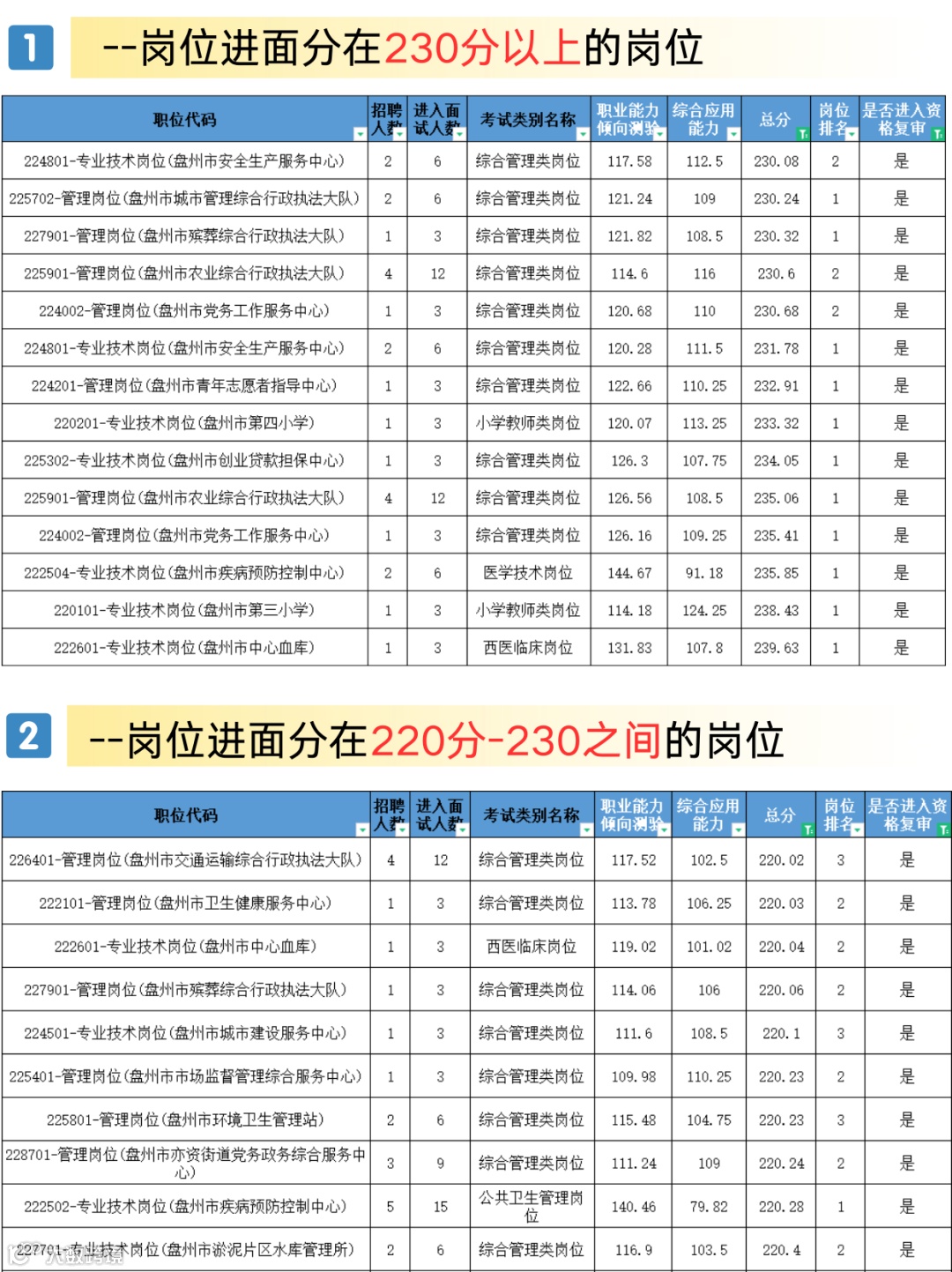 1️⃣盘州事业单位历年进面分详情