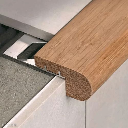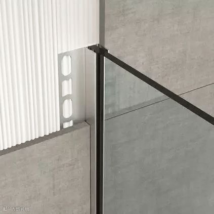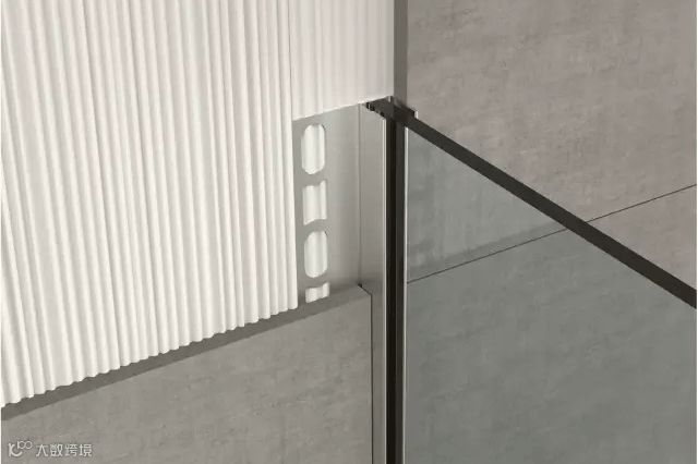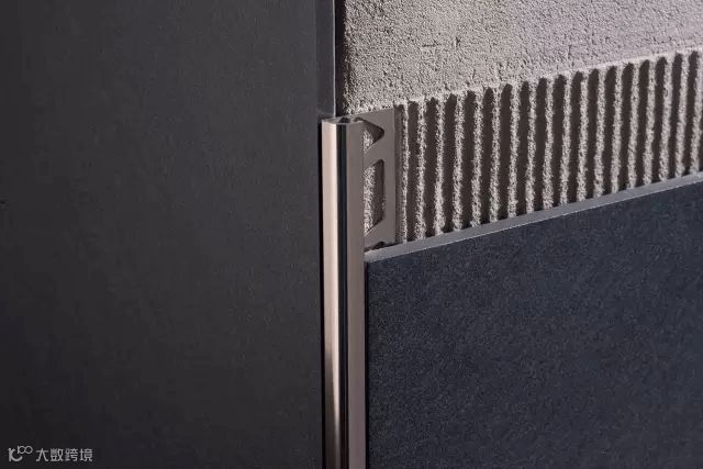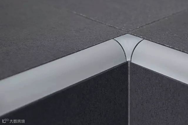 瓷砖在阴角阳角收口时,通常采取45°角对拼的方式。这样不仅容易崩边、开裂,还存在一定的安全隐患。而圆润的金属收边条不仅增强了装饰效果,也一并消除了这些问题。