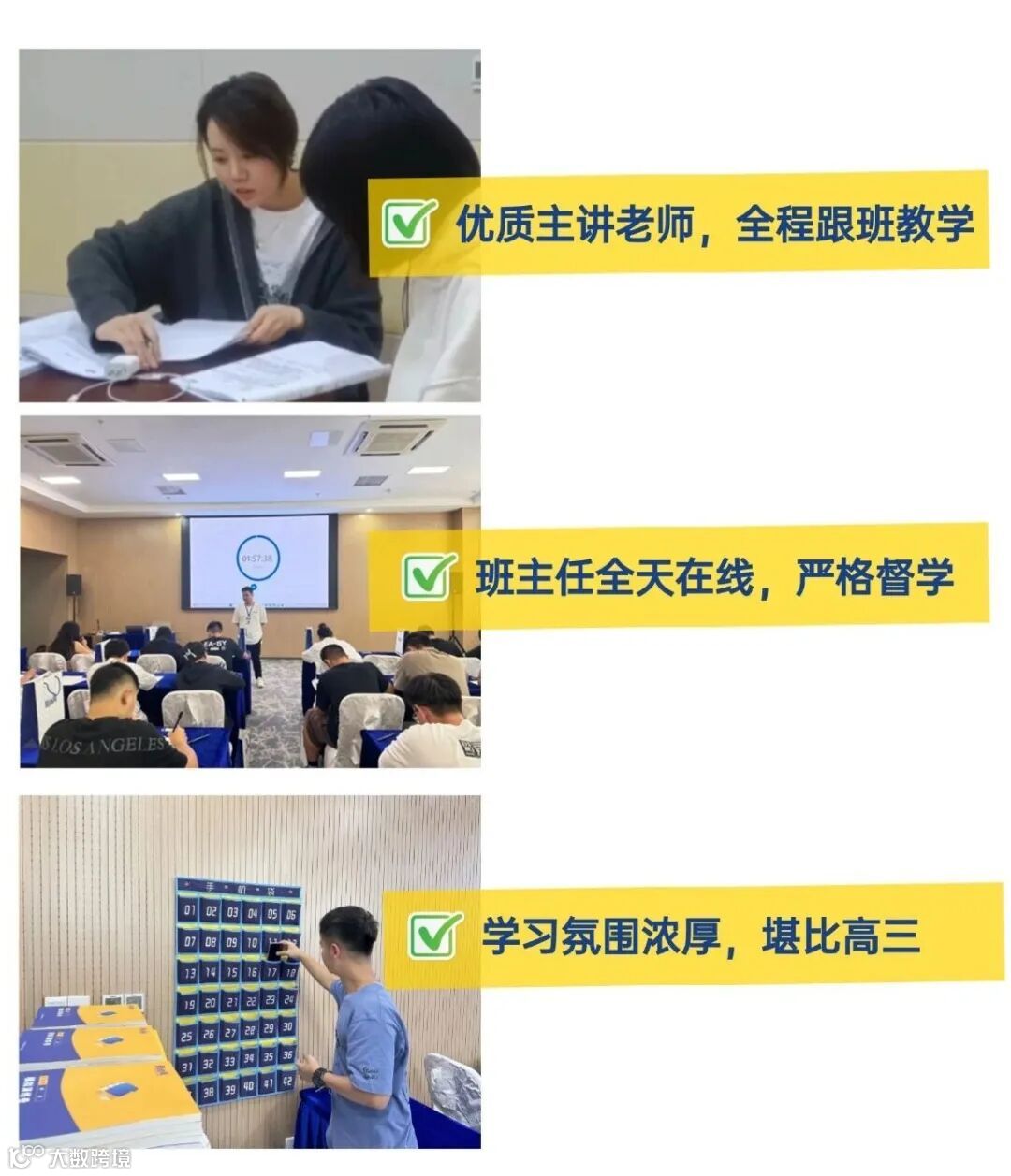每个班均安排有跟班班主任,全程严管考勤,学习有懈怠,备考有疑问,学习有困难,班主任在线指导,把线下培训真正意义落实到位。