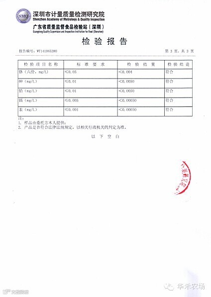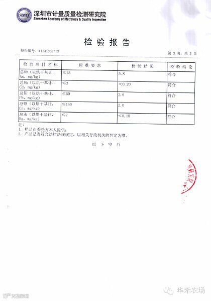 我们的农场从土地的选址到现在各种材料的使用,都通过了层层的严格把关,目的是为了能给您提供安全的、高品质的食材。为了让大家能够品偿到真正的纯天然无公害绿色农产品,目前我们种植前的各项准备工作正在逐步进行中,生产中将严格遵守绿色食品的生产技术标准,绝不使用农药、化肥、生长调节剂等化学物质;农场的土壤、水质及有机肥己全部通过深圳市计量质量检测研究院(即国家质量监督检验检疫总局深圳计量检定站,华南地区检测范围最广、综合实力最强的综合性检测机构)的严格检测,并且所有送检样品全部符合且优于国家标准(附检验证书)。在这么优越的原生态环境下,不久的将来大家将很快可以吃到我们为您种植的绿色无公害蔬果啦!我们相信过程是艰巨的,结果是完美的!华禾优品让您吃出健康,吃出小时候的味道!您的信任和支持将是我们存在的价值和发展的动力!