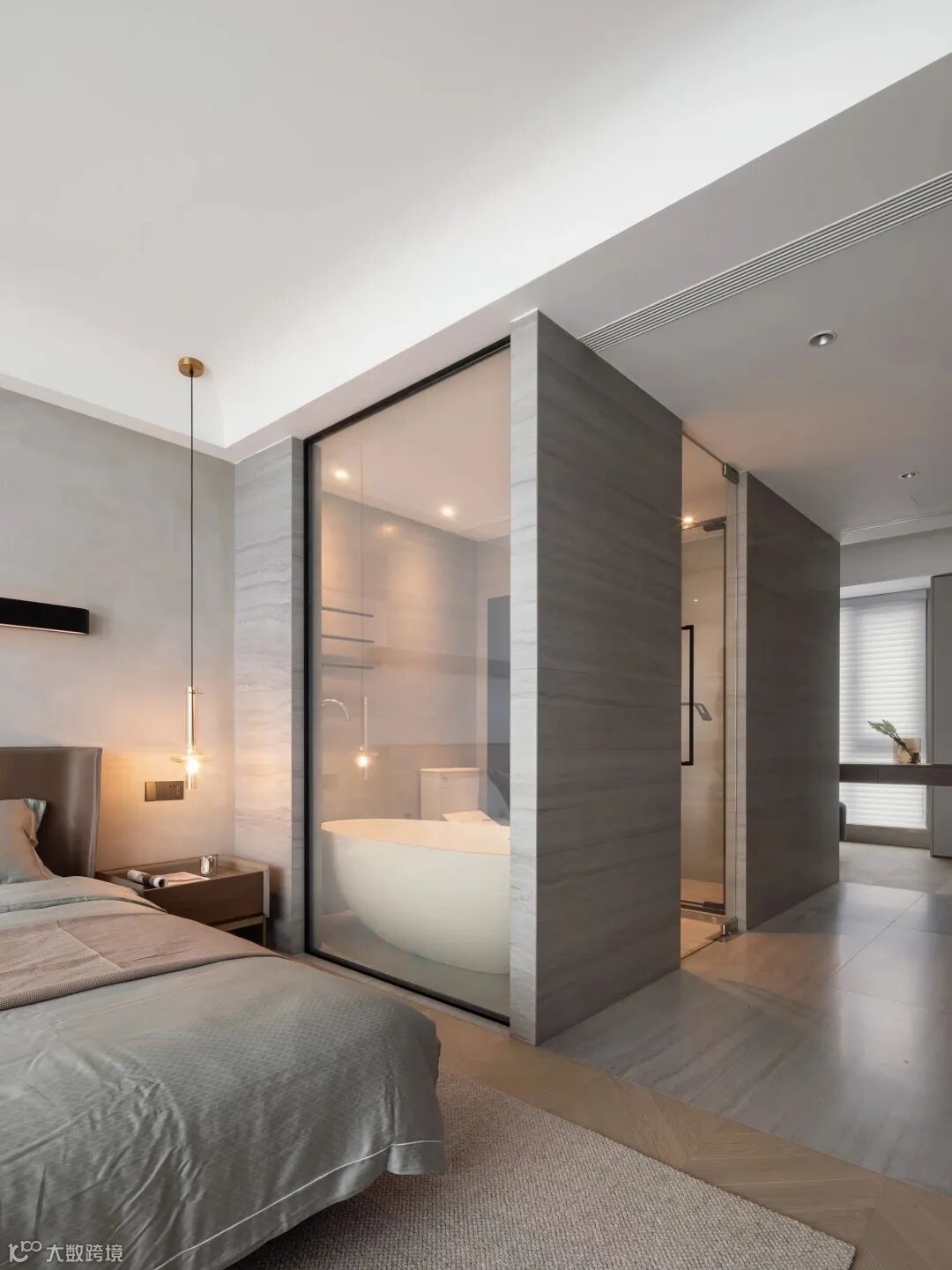 本案分享中,设计师在尽量不硬改的情况下,以极简意式为主旋律打造出空间的风格与质感,加入灰色、胡桃色为主色调加持空间氛围,沉稳的气质浸染到居者的日常。