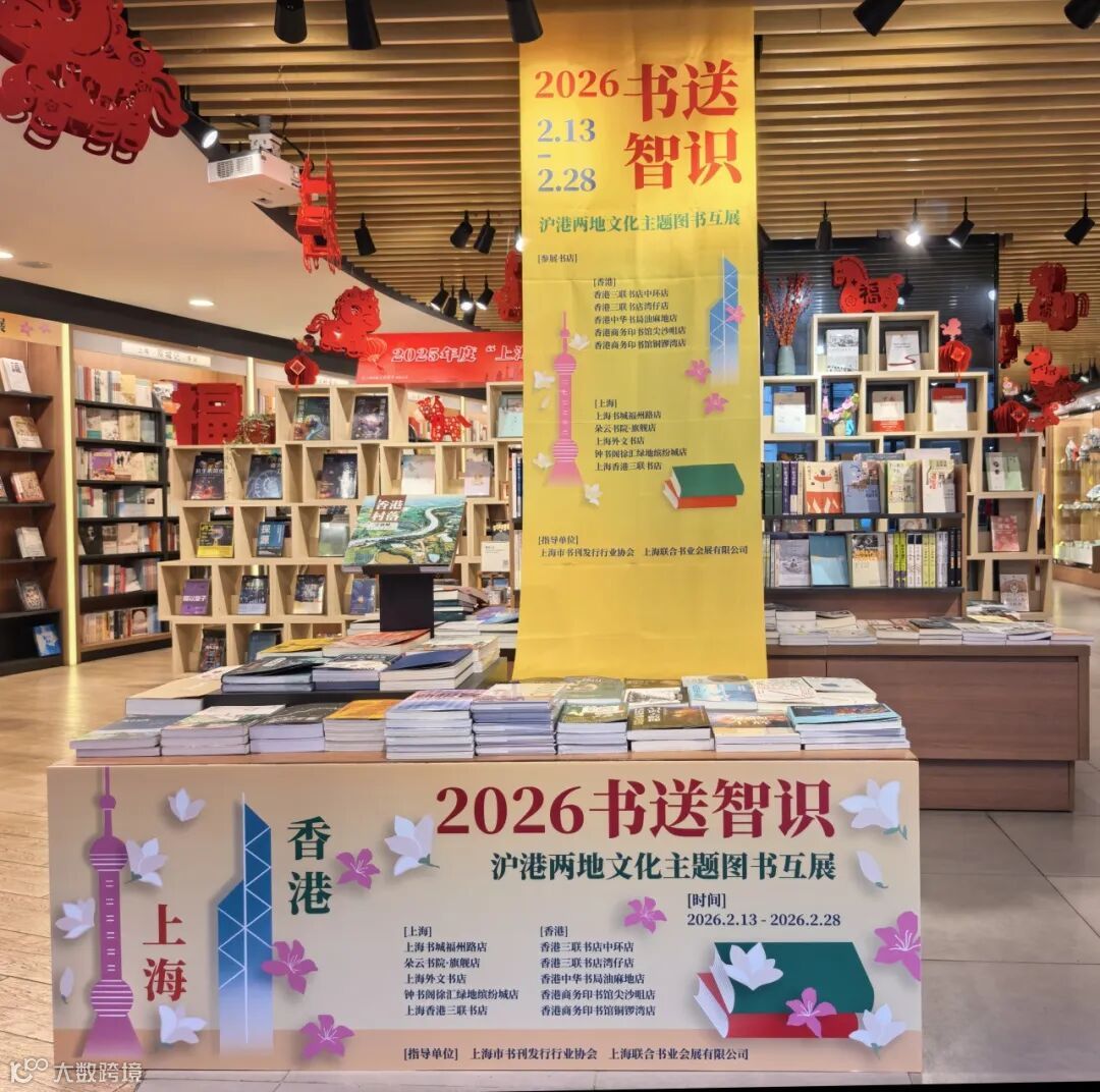 2月13日起,香港三聯書店中環店、香港三聯書店灣仔店、香港中華書局油麻地店、香港商務印書館尖沙咀店、香港商務印書館銅鑼灣店和上海書城福州路店、朵雲書院•旗艦店、上海外文書店、鐘書閣徐匯綠地繽紛城店、上海香港三聯書店等十家書店聯合推出「2026書送智識——滬港兩地文化主題圖書互展」, 展現滬港兩地年度好書、為兩地讀者送上一份特別的「雙城記」新春書禮。