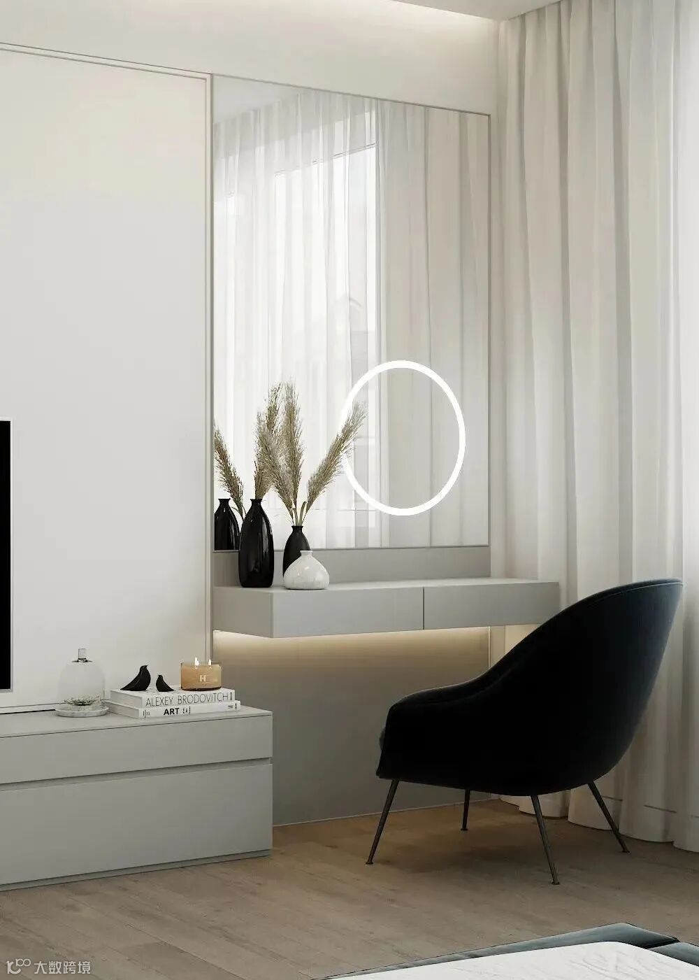 客厅展现了一个宁静空灵的世界,以简单、纯粹为追求,在官感上透出源源不断的艺术气息。