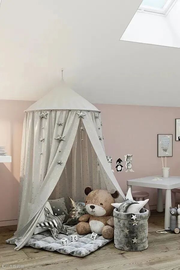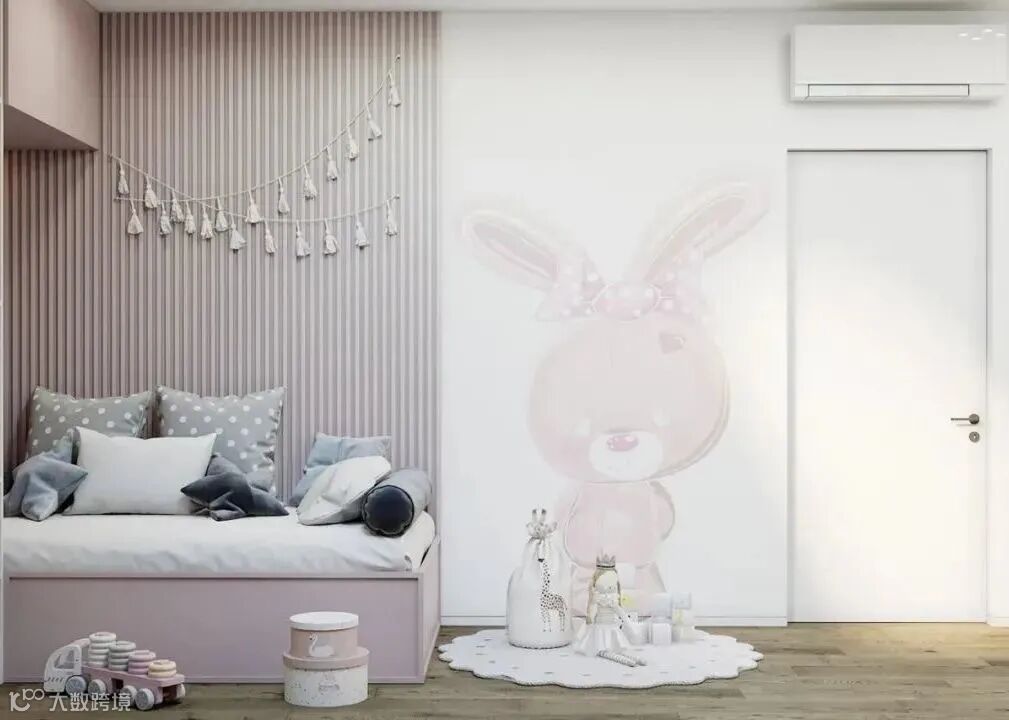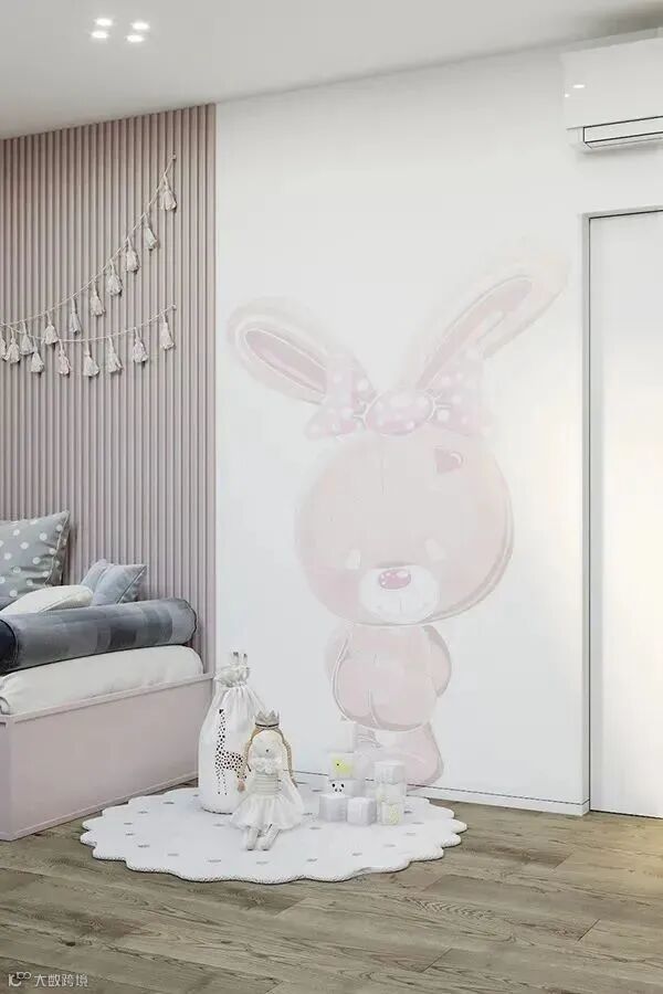 粉色女孩房给人的感觉就是充满了甜美、温柔和纯真,一种浪漫的幻想,就像甜甜的棉花糖一样,蓬松蓬松的,很有温暖自然的感觉,不会觉得压迫,也不会有视觉上的冲击感,完全符合儿童的纯真性格和美好幻想。