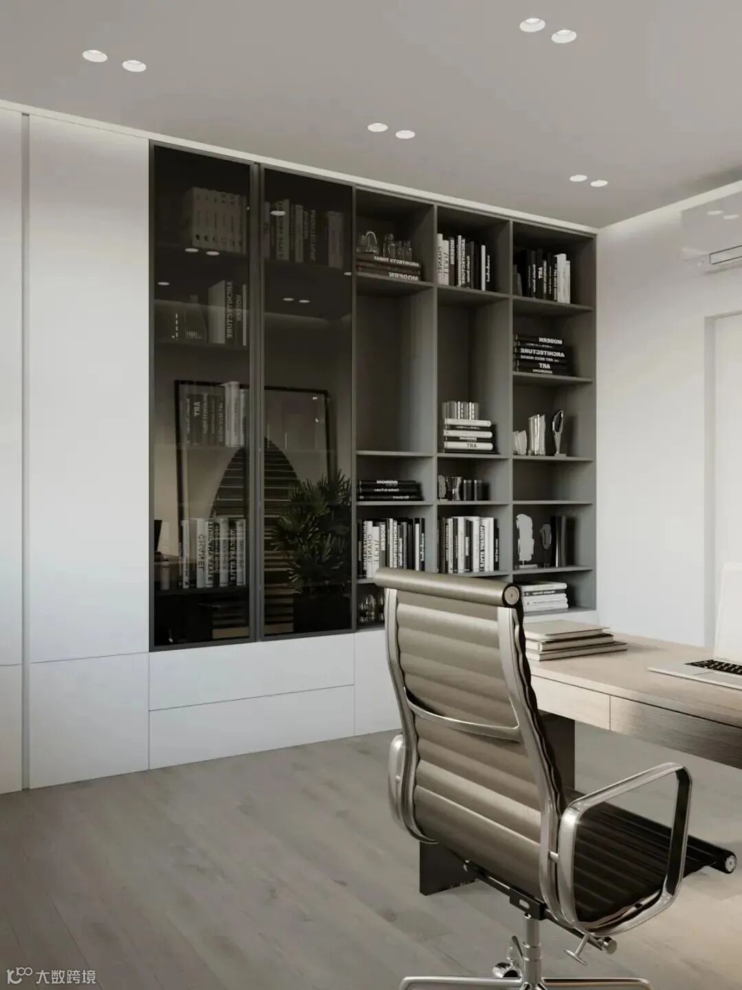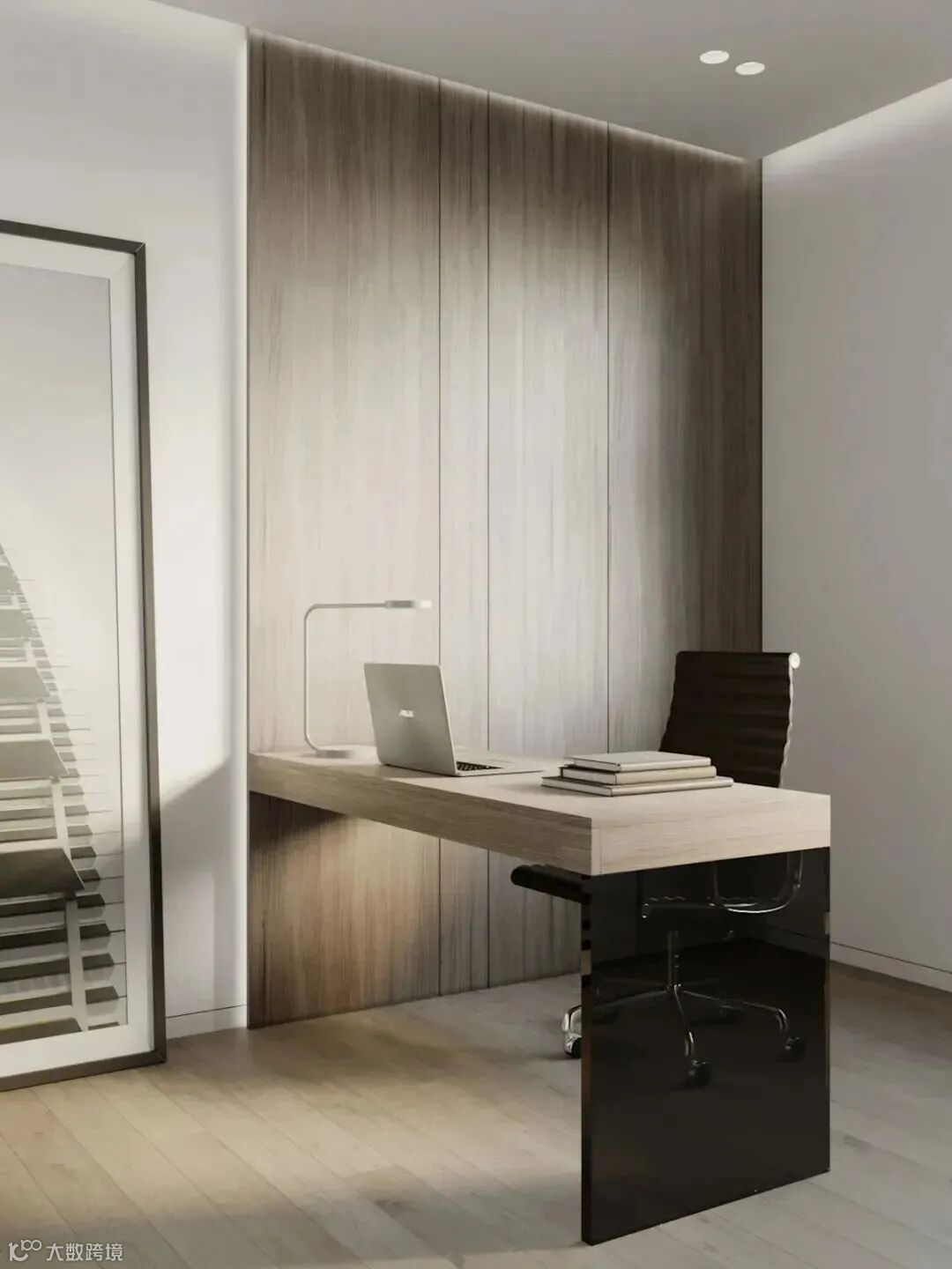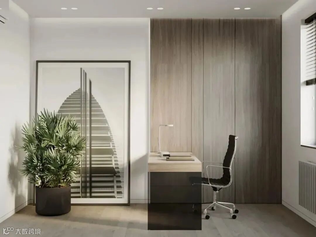 书房加入了胡桃木的书架,与白净的墙面形成了鲜明的对比,去繁从简,减少了不必要的装饰。