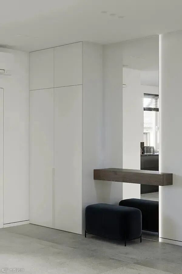 室内玄关的设计,以简单到极致为追求,感官上简约整洁,品味和思想上更为优雅。少就是多,排除一切不必要的东西。