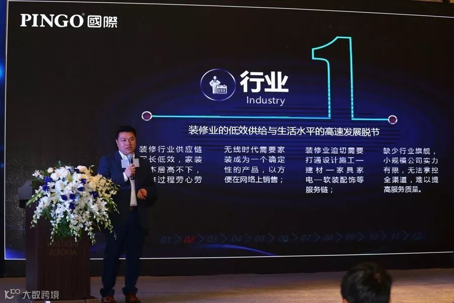 在嘉宾分享环节上,杨耀祖就“整合、融合、共生 构建大家居生态圈 ”进行主题演讲。PINGO国际一直强调大家居生态,演讲上杨耀祖对于大家居生态的理解是:家装产品化、产品工厂化、工厂定制化、定制精品化,最终要赋予它内涵、赋予它美的定义。在他看来,在整个行业处于装修低效供应、市场高速发展的境况下讲产品工厂化,即是设计、产品、价格、服务、施工五大标准化的严格要求。