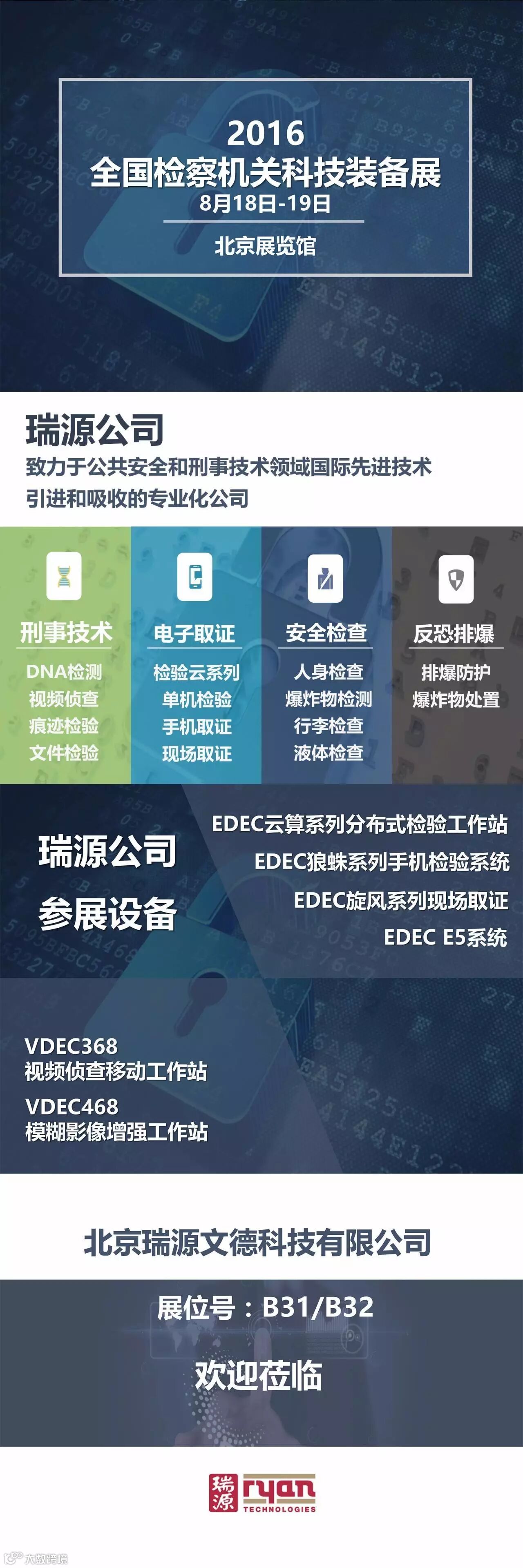导读:瑞源公司即将参加2016·全国检察机关科技装备展