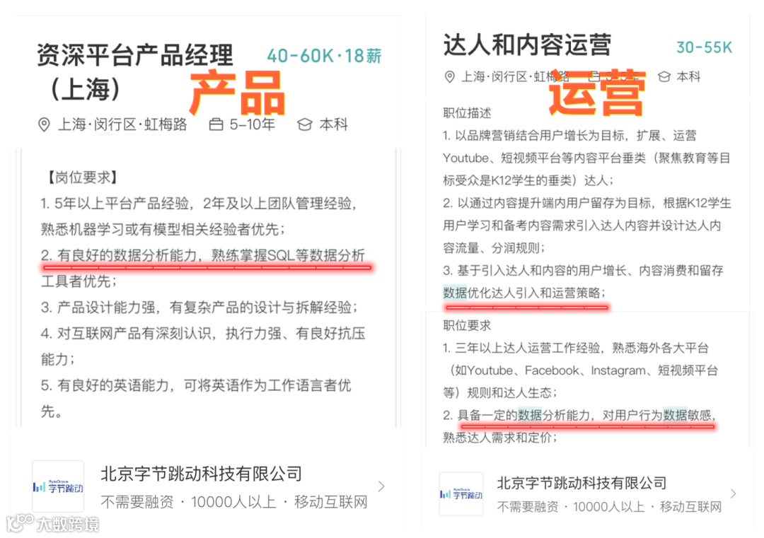 上面的招聘信息可以看出,大厂特别钟情那些有数据分析能力、对数据敏感的人才,甚至不惜愿意支付“天价”去招揽。