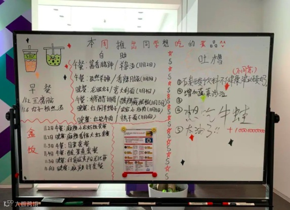 餐厅免费三餐自助,下午茶,零食水果统统不限量,还支持吐槽和点菜↓