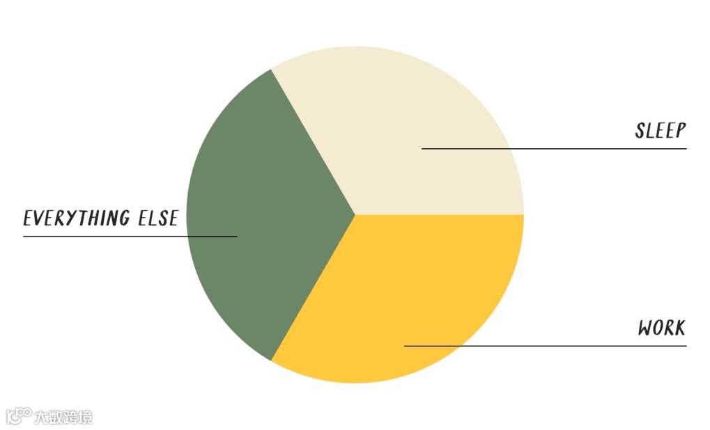 扣除睡觉的时间,一天就除去了近三分之一的时间。另外再算上八个小时的工作时间,就只剩下三分之一的空闲时间了,这还不包括通勤时间或是下班后回复邮件的时间。