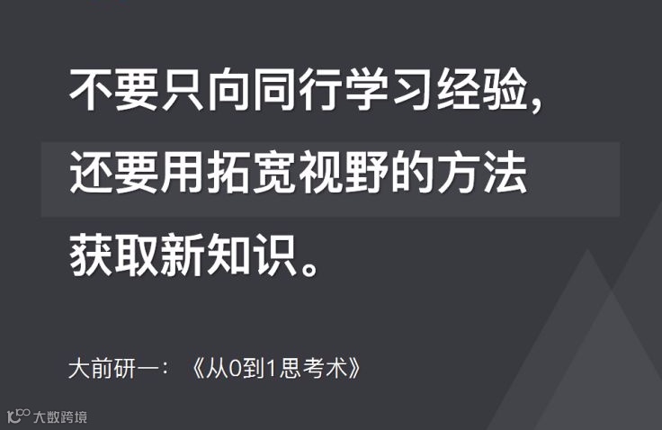 如果你所在的公司不思进取,那么几年之后公司是否还存在就成了未知数。所以,我们必须拓宽视野,向其他行业学习先进经验。