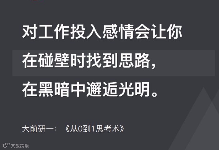 对工作的热情是创意的起点。我们都应该反省一下,看看自己是否爱岗敬业。只有热爱工作的人才能在失败时再次站起来迎接新的挑战。